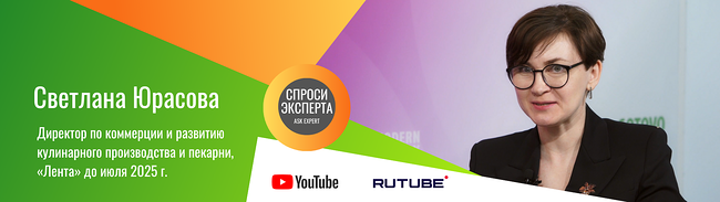 В студии Modern Bakery | Confex | Gotovo – Светлана Юрасова, директор по коммерции и развитию кулинарного производства и пекарни «Лента» (до июля 2025), спикер конференции Gotovo.