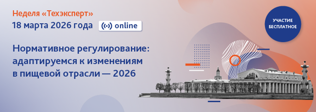 Недели «Техэксперт» пройдёт секция «Нормативное регулирование: адаптируемся к изменениям в пищевой отрасли — 2026». Спикеры секции проведут всесторонний анализ нововведений в техническом регулировании и расскажут, как изменения скажутся на производственных цепочках.