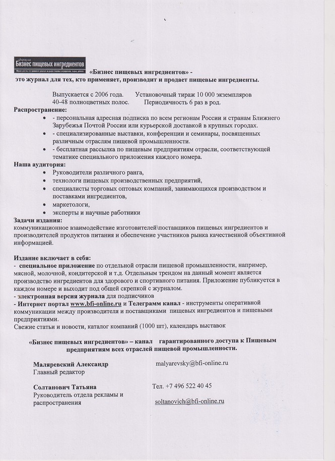 Журнал для тех, кто принимает решения на рынке пищевых ингредиентов, сырья и добавок